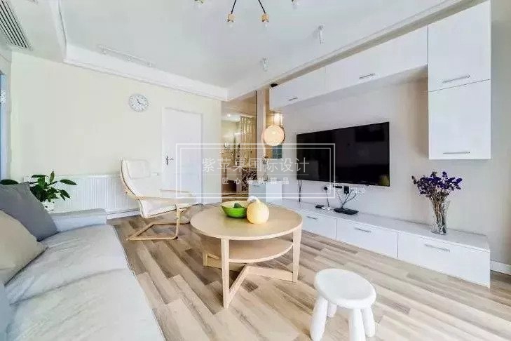 電視背景墻也可以很好的利用起來(lái),在墻上打上一整面柜子,兼顧好看又實(shí)用。